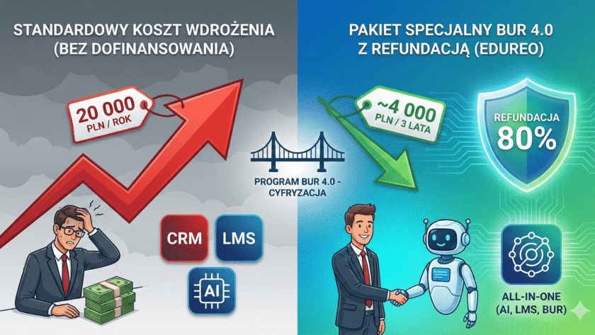 Wiesz, że Twoja firma potrzebuje cyfrowej transformacji, ale boisz się kosztów? Profesjonalne systemy LMS i CRM to często wydatek rzędu kilkunastu tysięcy złotych rocznie. Mamy jednak sposób, byś zapłacił tylko…